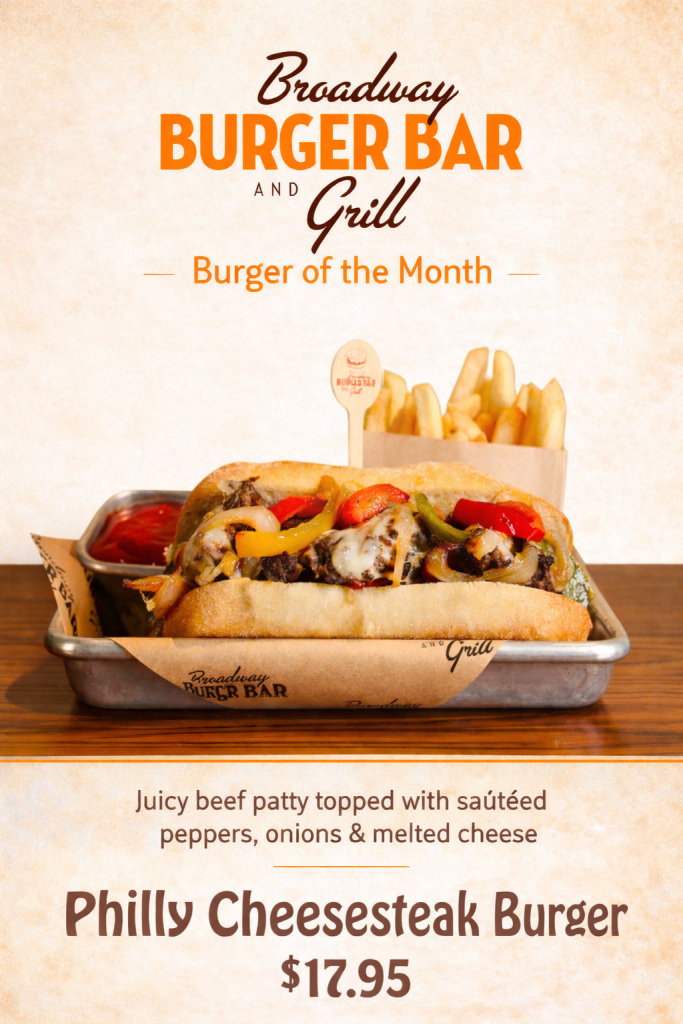 Broadway Burger Bar & Grill at the Village Streets of New York—New York Hotel & Casino, proudly serves healthy and delicious, high-quality burgers that are low in fat & cholesterol. Choose from a variety of specialty burgers or build your own by choosing a beef, salmon, chicken, turkey, or veggie—and topping it with our large selection of cheeses, vegetables, and condiments. One bite and you’ll know why people keep coming back for more.